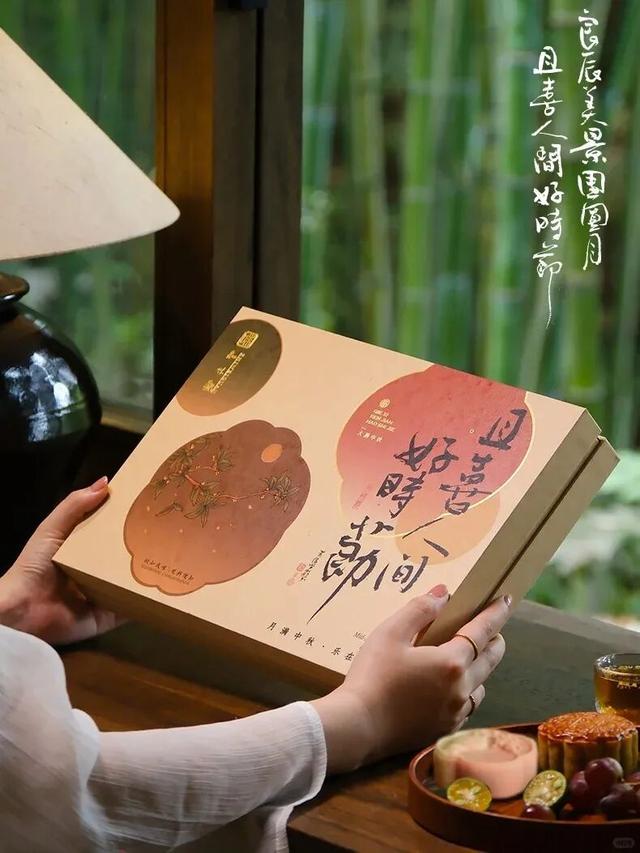 不得不说,知味观的糕点礼盒真的很适合当节礼送人,这个“乐在团圆”礼盒外面用了团扇形式的风景画做装饰,周围还有精致的烫金,而且拿到手是那种类似牛皮纸的质感,好看又高级!