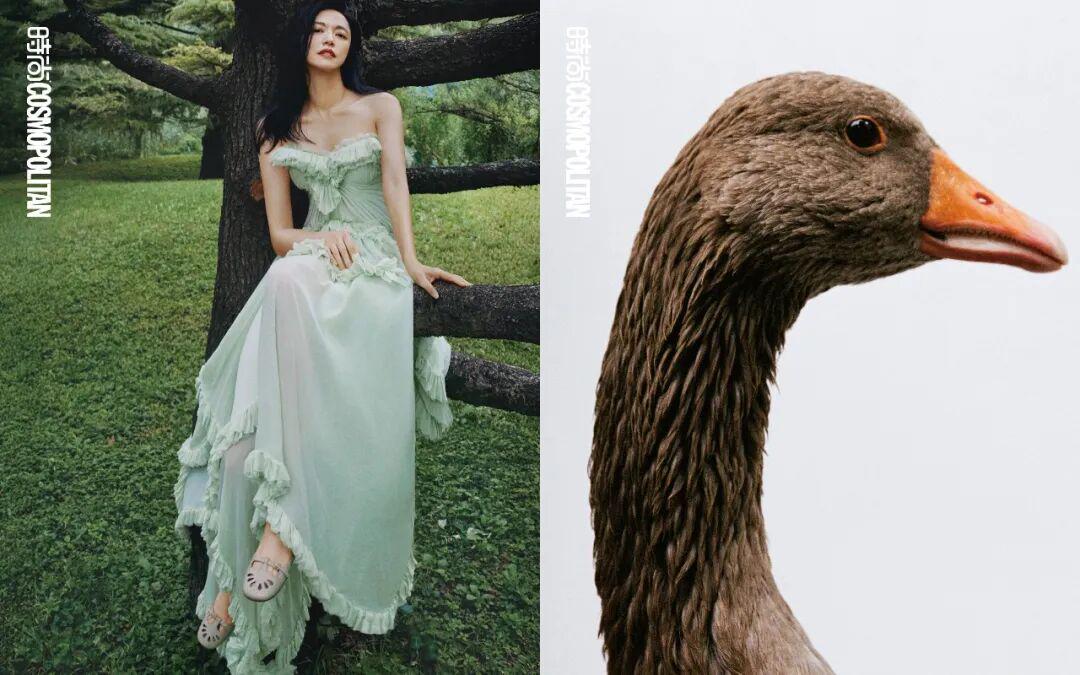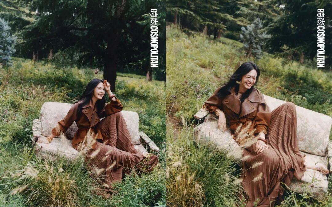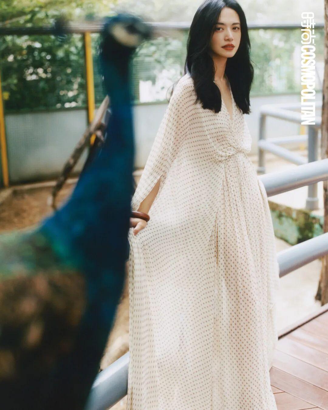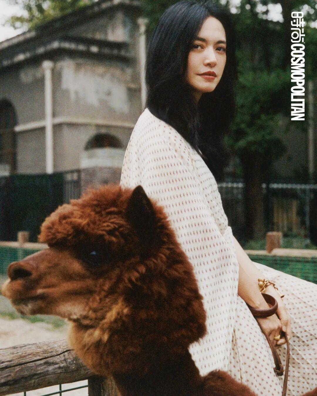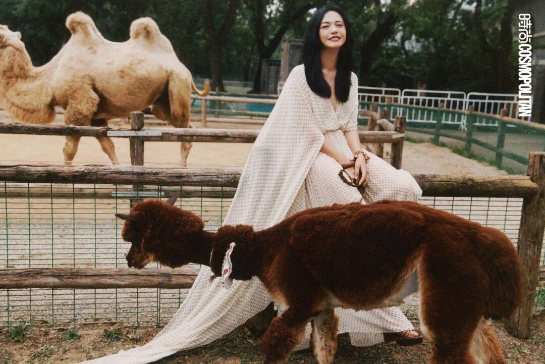 如果不是COSMO的这次拍摄,姚晨想象不出清晨5点半的动物园会是怎样的景象。万籁俱寂,绝大多数动物或许还沉浸于睡梦之中,高大浓密的树木遮蔽住日出时分光线的细微变化。所有的感官在静谧中被充分激活后,姚晨闻到独属于食草动物的味道,方才有了实感,“原来我真的在动物园”。