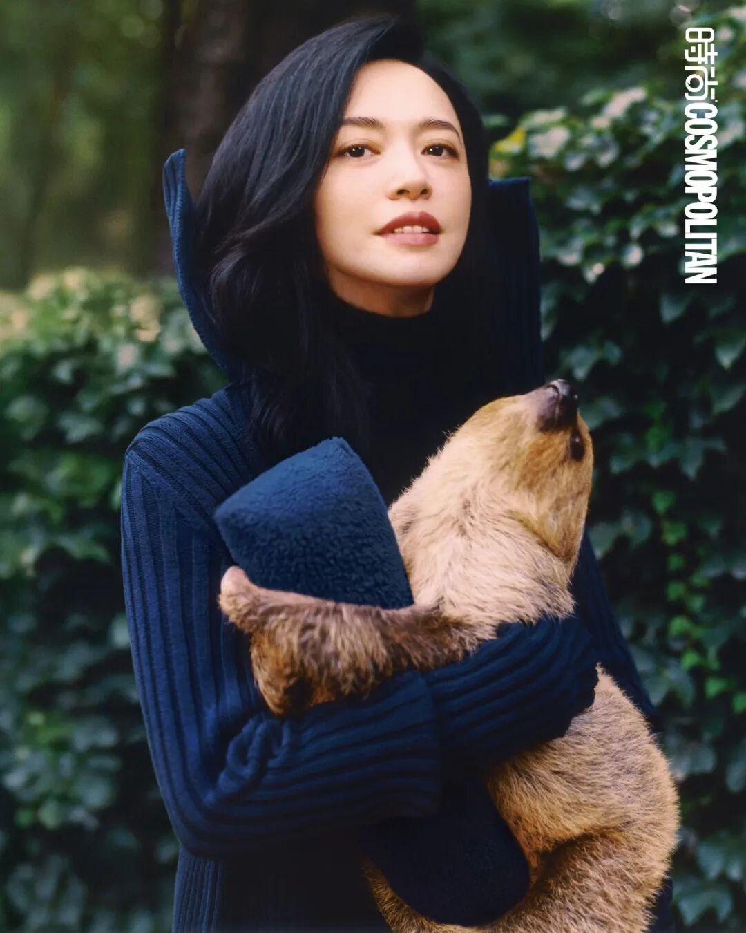 这是姚晨第一次近距离观察和接触动物宝宝,为了确保动物能感到安全与自在,现场只有饲养员、摄影师、姚晨。二趾树懒宝宝的爪子钩住小枕头,姚晨小心翼翼地隔着长条枕抱住,树懒宝宝茂密柔软的绒毛亲吻她的手指。