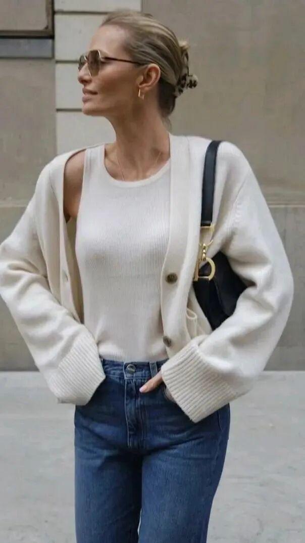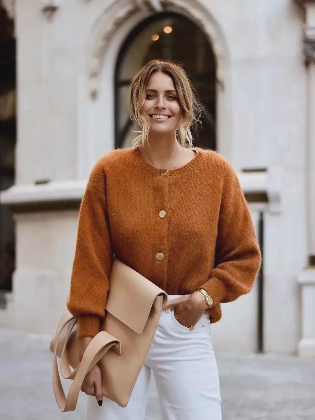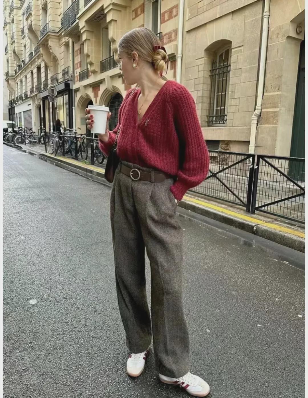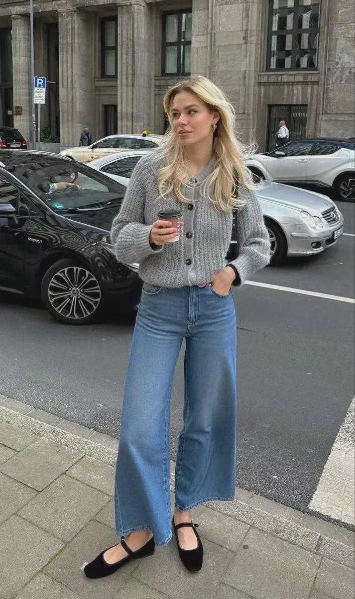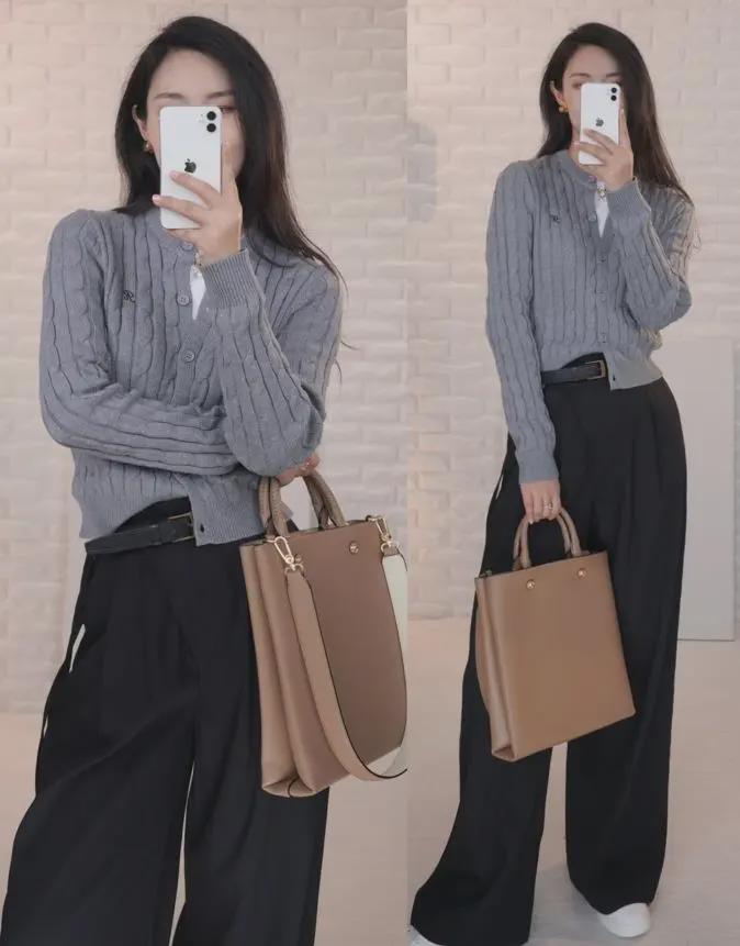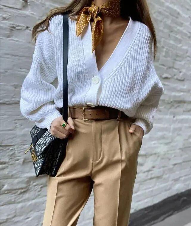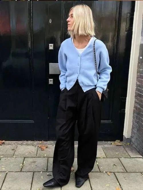 短针织衫与阔腿裤的搭配,是春秋季节里既保暖又时尚的穿搭组合。这种搭配不仅展现出穿着者的休闲与随性,还透露出一种温婉而优雅的气质。