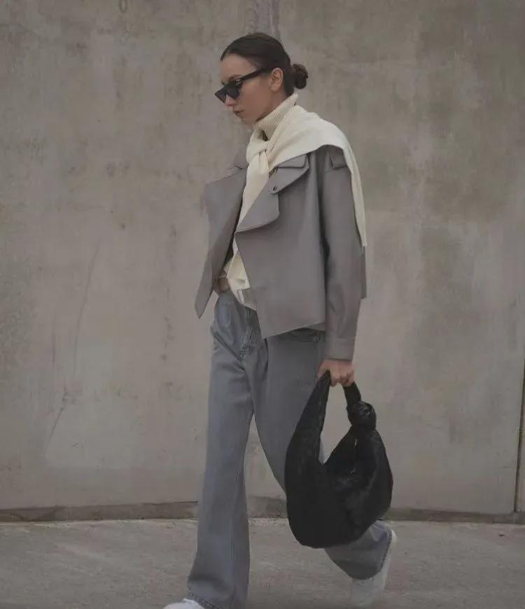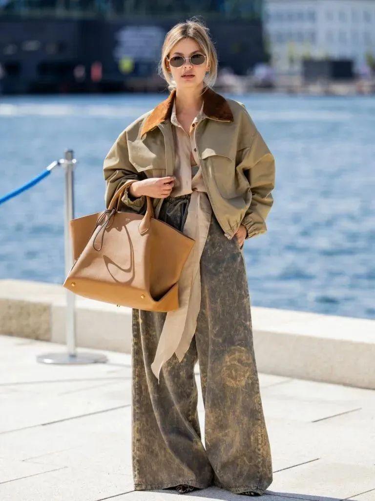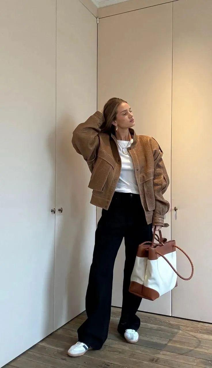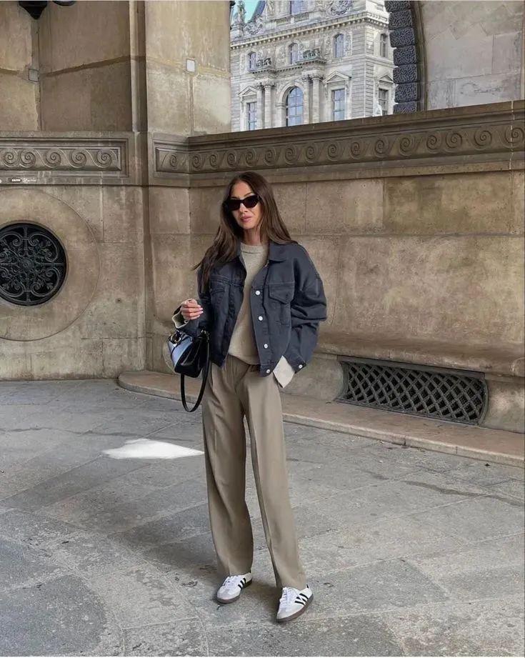 短夹克与阔腿裤的搭配是一种集时尚、休闲与个性于一身的穿搭组合。这种搭配不仅展现了穿着者的独特品味,还彰显了其自信从容的生活态度。