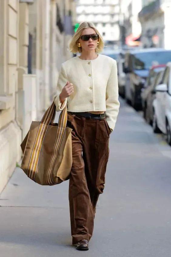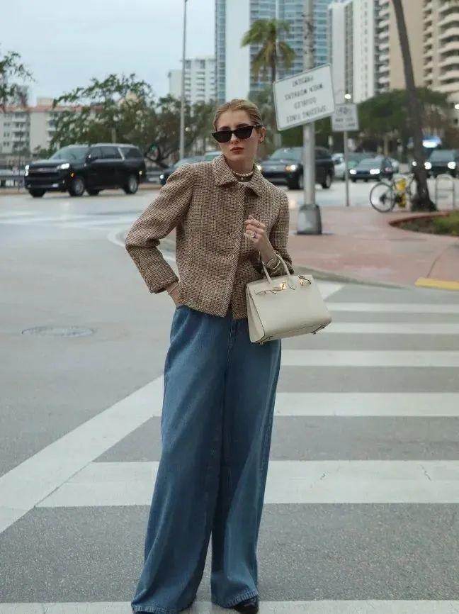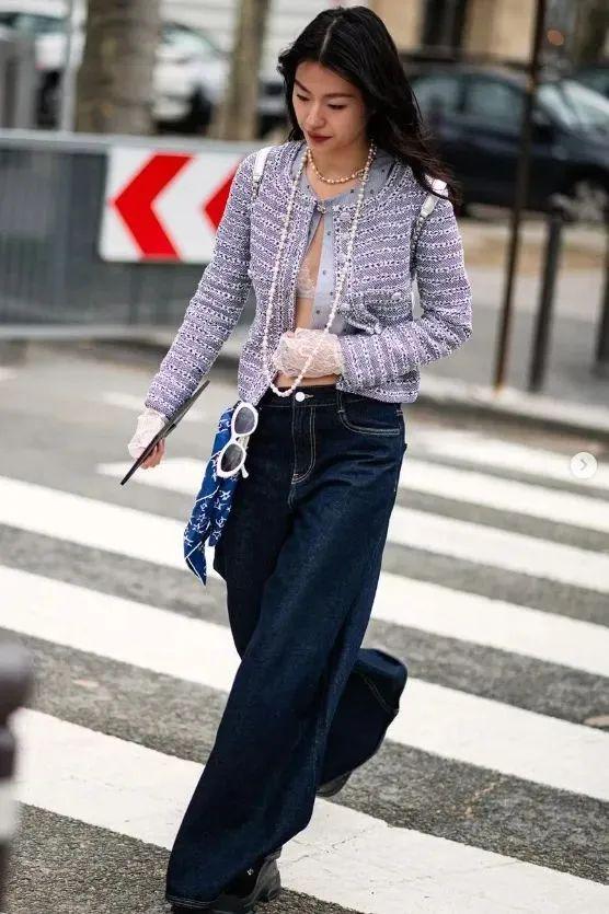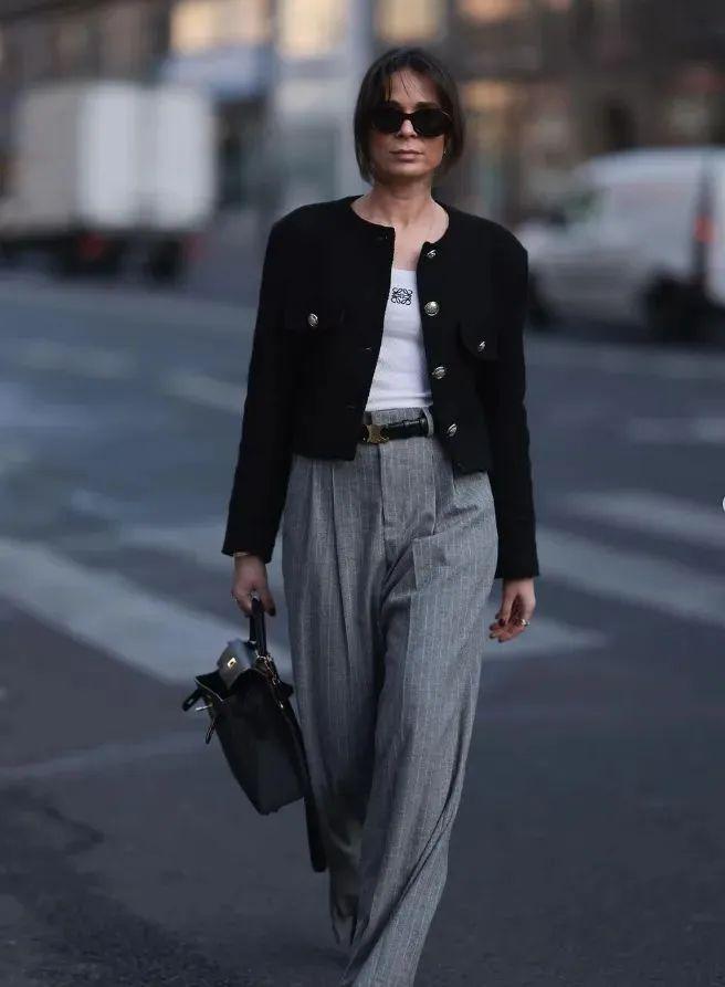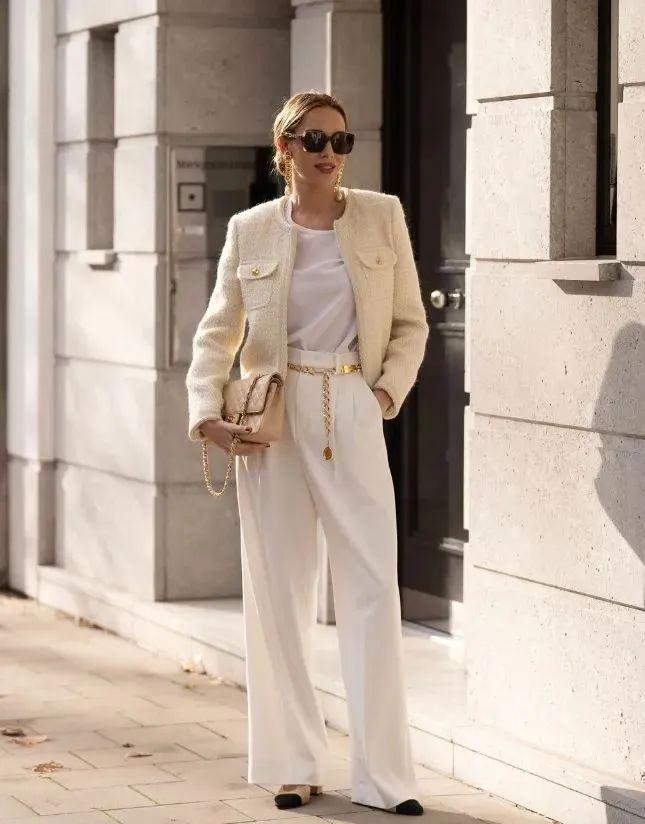 当短小香风外套与阔腿裤相遇时,两者之间的默契配合便打造出一种既高级又时尚的穿搭风格。