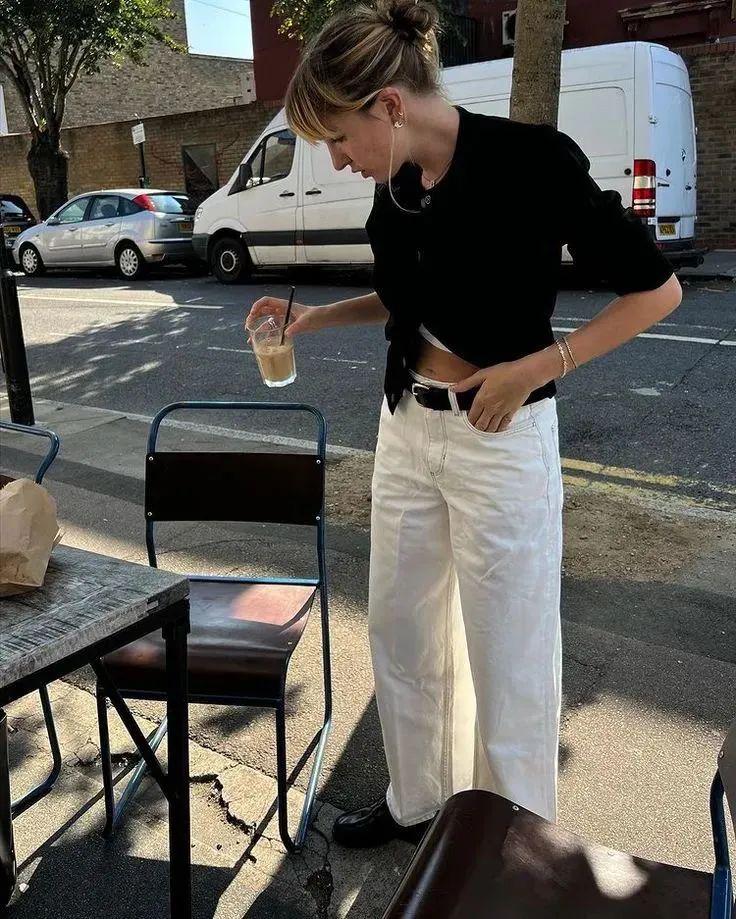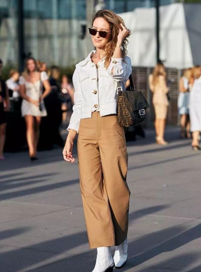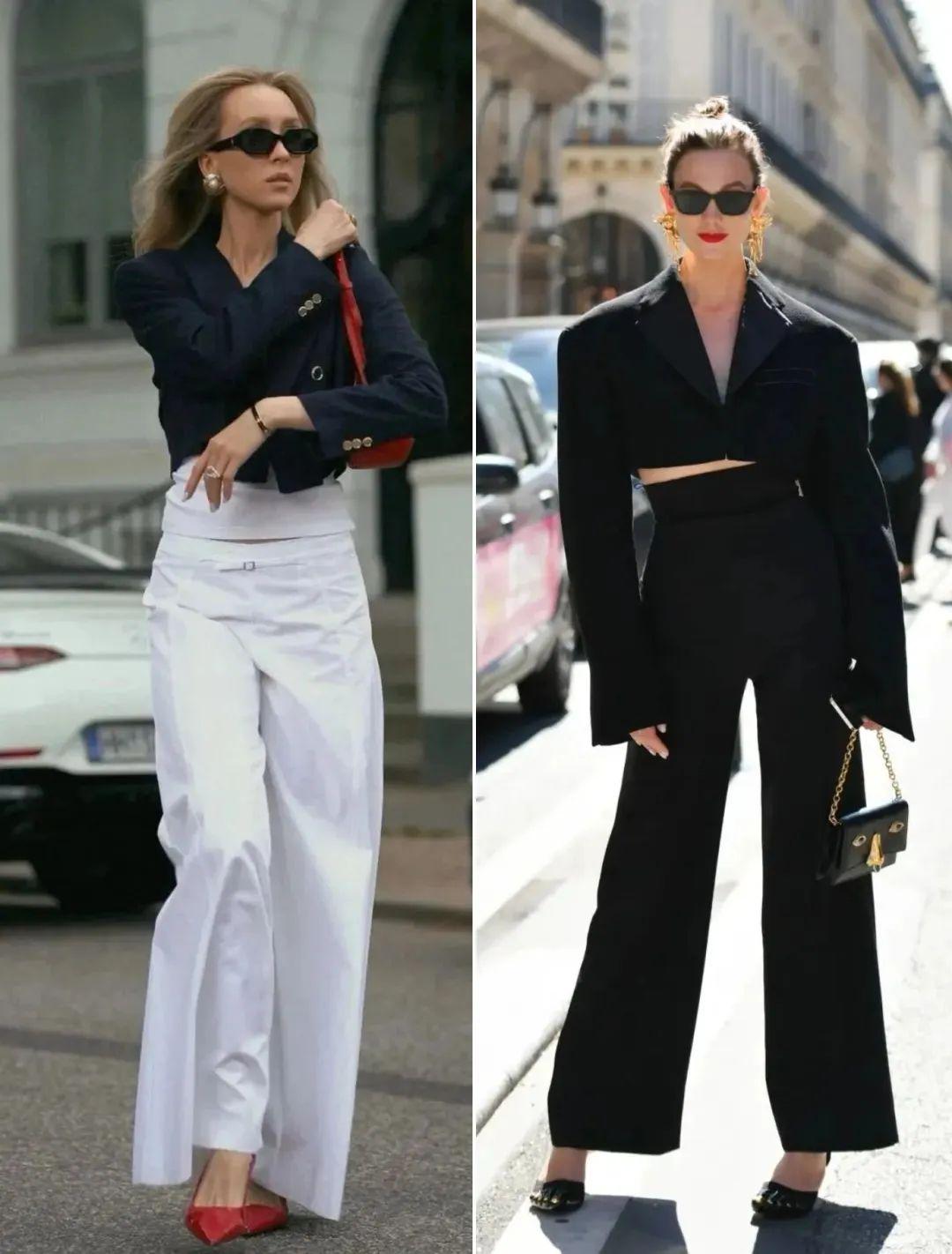 搭配阔腿裤时,这种组合更加凸显了穿着者的身材优势