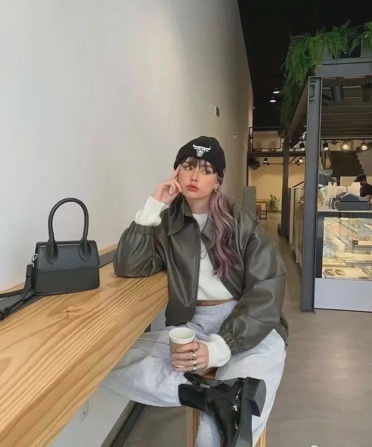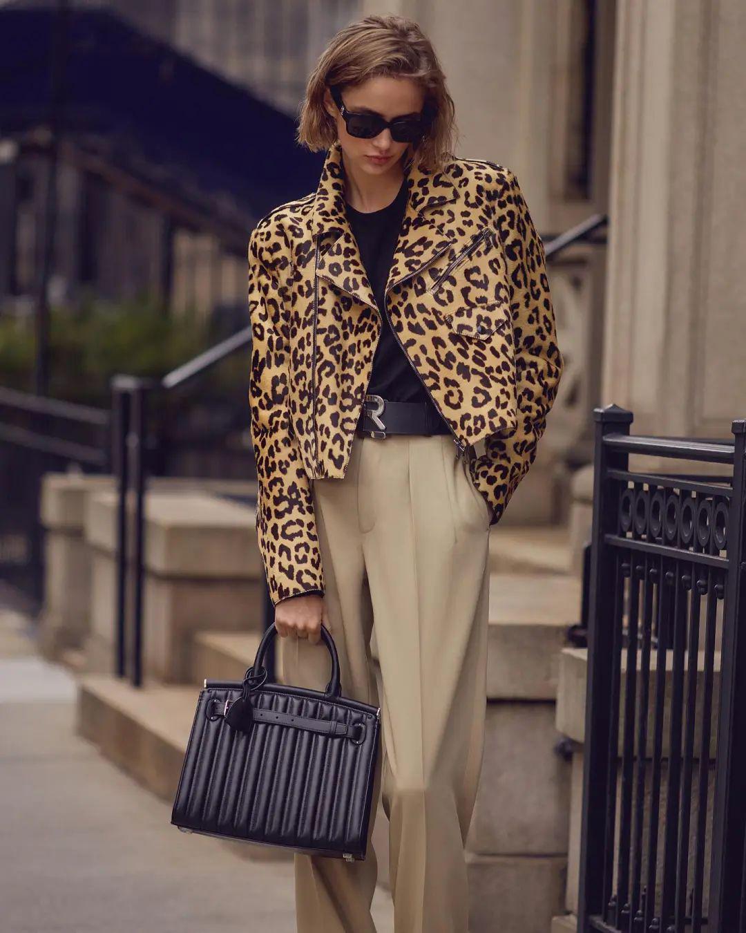 短皮衣与阔腿裤的搭配,是时尚界中经典而又不失个性的组合。短皮衣以其硬朗的质地和简洁的剪裁,散发着一种不羁与酷帅的气息,完美地勾勒出穿着者的上身线条,展现出一种力量与柔美并存的独特魅力。