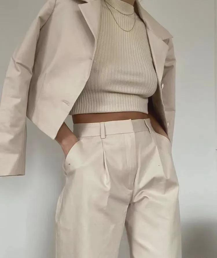 秋冬,短款外套搭配阔腿裤,又气质又帅气,不管是出席重要场合,还是日常工作,都能完美hold住全场,毫不费力的穿出高级又有范的气质。