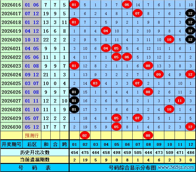 后区第一位推荐:在连续5期开奖中分别出号:01、01、01、05、05,均值为2.6,偶数号码没有出现,本期重点关注偶数号码回补,关注号码02。